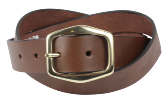 Brass Hexagon Buckle 1 1/4 Inch Leather Belt