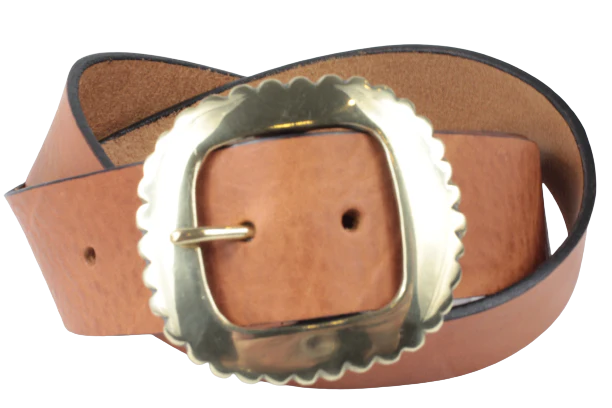 The Tan Leather Jean Belt is edged in black. The belts are finished to the highest standards, and are crafted by hand at Buckle my Belt.