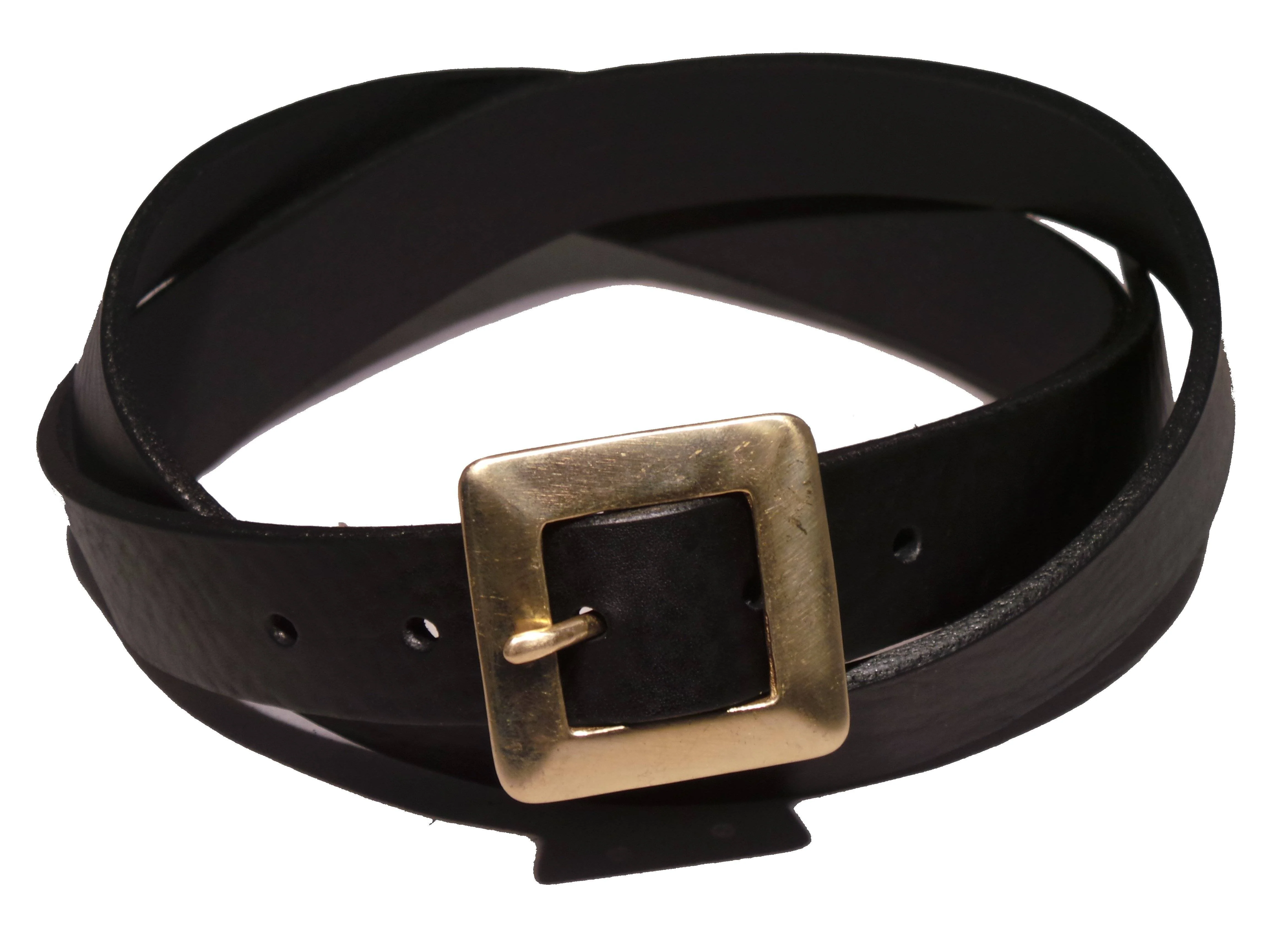 Buy a 25mm Black Leather Belt with Brass Square Buckle