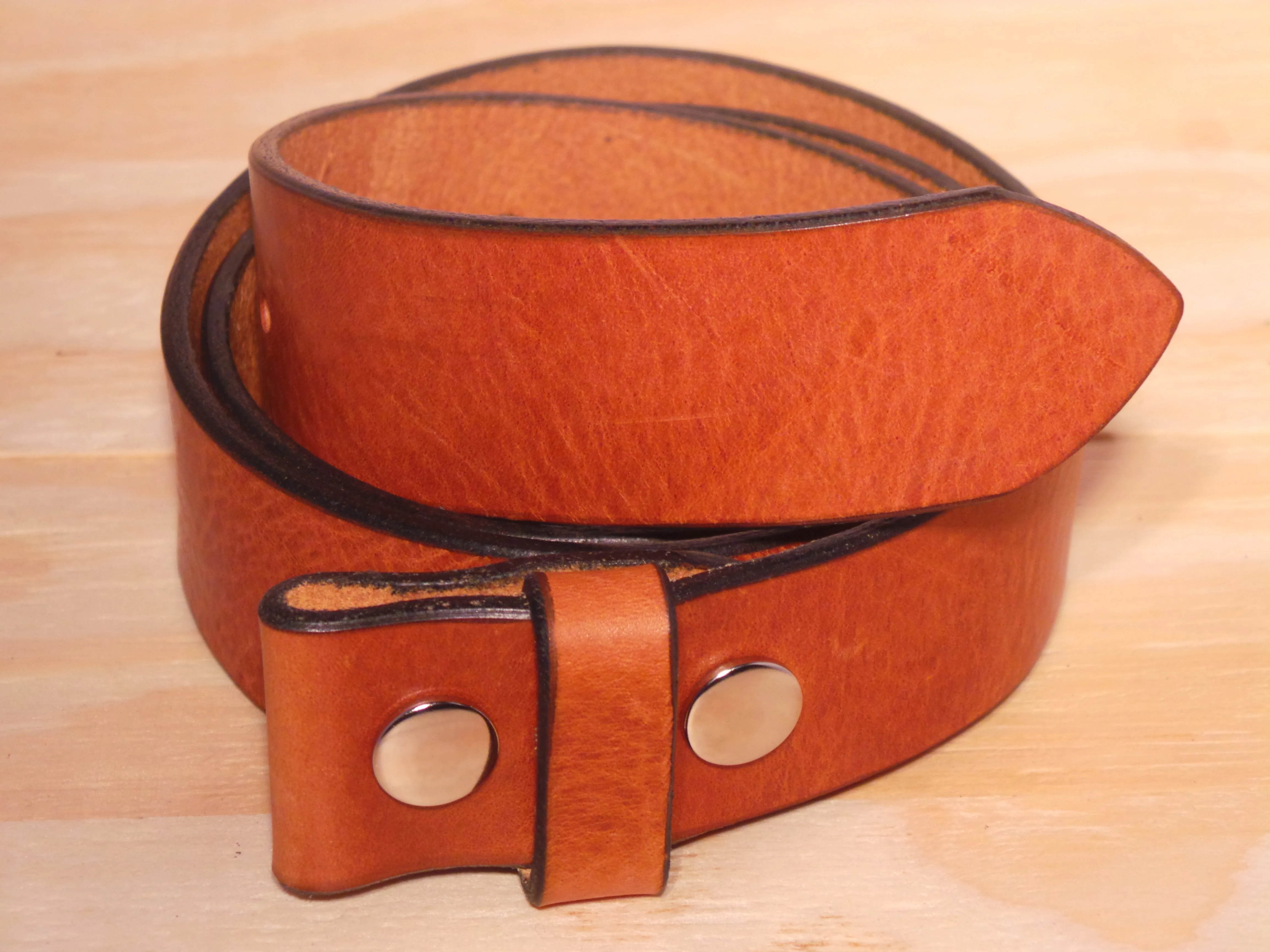 The 1 1/2 Inch Dark Tan Leather Belt Strap is edged in black. The belts are finished to the highest standards, and are crafted by hand at Buckle my Belt in the UK.