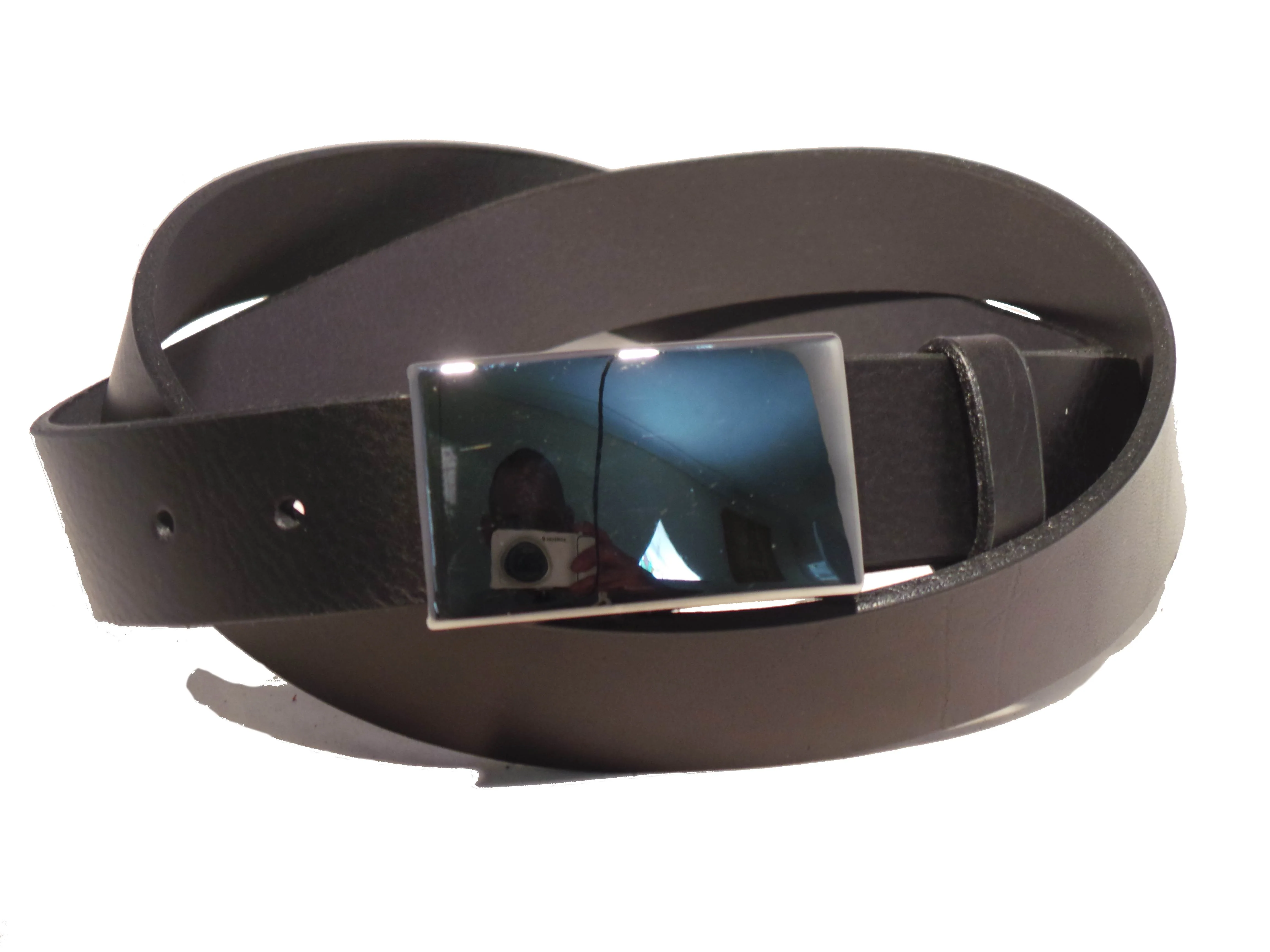 Buy a Men's Black Leather Trouser Belt Polished Silver Buckle